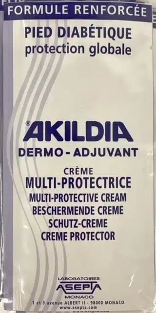 De AKILDIA® Multi-Beschermende Crème zorgt voor volledige bescherming van de opperhuid van de diabetische voet. Hydrateert intensief, versterkt de barrièrefunctie en verwijdert eelt. Met anti-bacteriële en anti-schimmel stoffen voorkomt het ook agressies van buitenaf die schadelijk zijn voor de voeten.