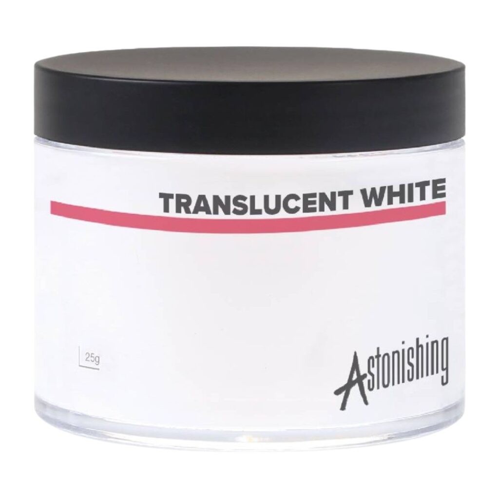 Deze Astonishing Acryl Poeders zijn speciaal geformuleerde poeders voor een gecontroleerde applicatie. De combinatie tussen de vloeistof en poeders biedt een superieure hechting, meer flexibiliteit, betere kleurstabiliteit en een perfecte hardheid van het kunstnagelproduct. Breng de nagel tot een hoogglans effect zonder dofheid of krasjes. De combinatie van Astonishing poeders en Astonishing vloeistof maakt het voor de nagelprofessional mogelijk om met enkele bolletjes acryl een volledige nagel te creëren, afhankelijk van de lengte van de nagel.