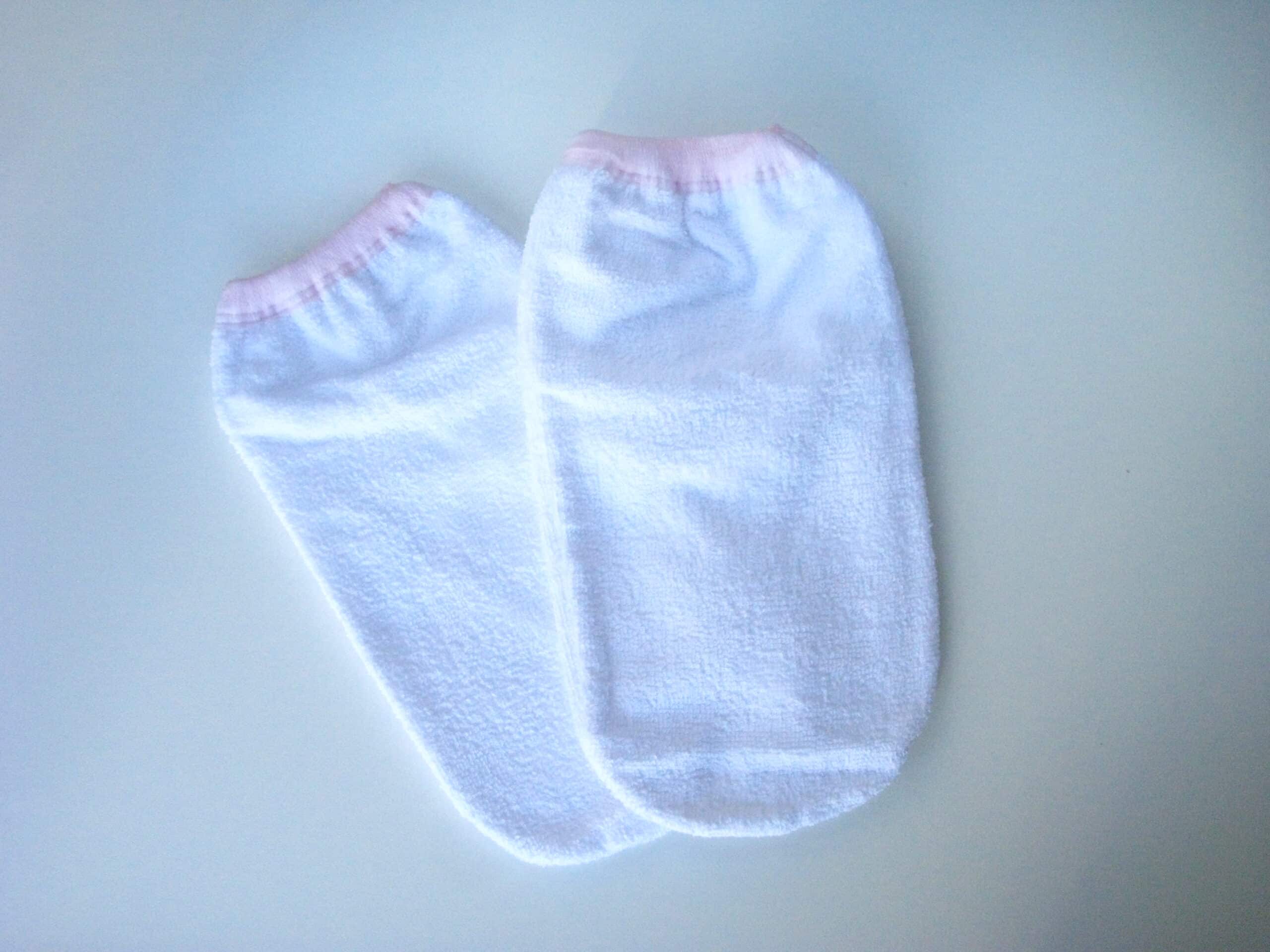 Deze wit gekleurde badstof handschoenen worden veelvuldig gebruikt bij paraffine behandelingen voor de handen in beauty salons en welness centra. Parafinne behandeling voor de handen zijn eenvoudig uit te voeren en zijn na de zomer en in de winter een welkome en betaalbare aanvulling op de andere behandelingen in je salon. Het zorgt ervoor dat de handen weer als nieuw aanvoelen De badstof handschoenen zorgen ervoor dat de warmte van de parafinne lang wordt vastgehouden, zodat de werkzame stoffen in de creme kunnen hydrateren in de huid en het nuttig herstel werk kunnen doen.