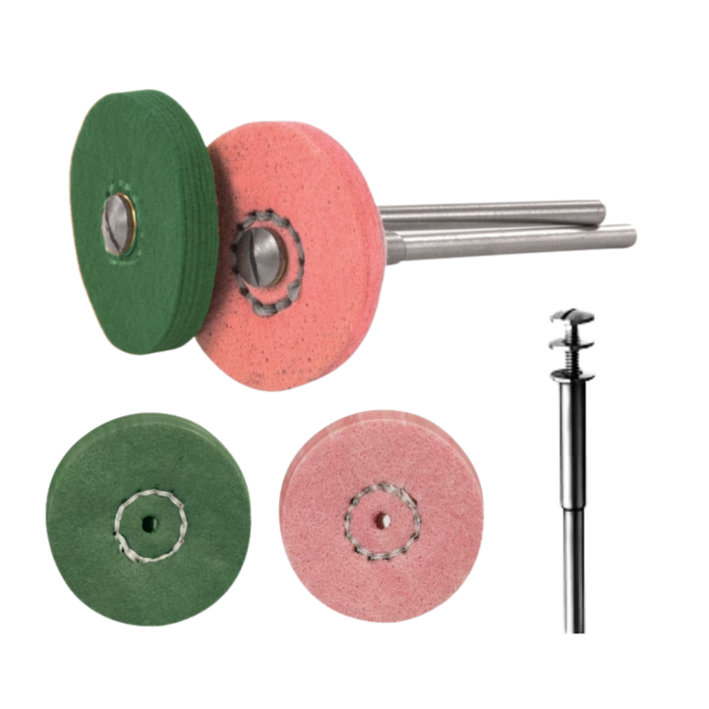 Gebruik de soft wheels in combinatie met een polijstpasta. De buffs kunnen eenvoudig op de roestvrije houder worden gemonteerd.
