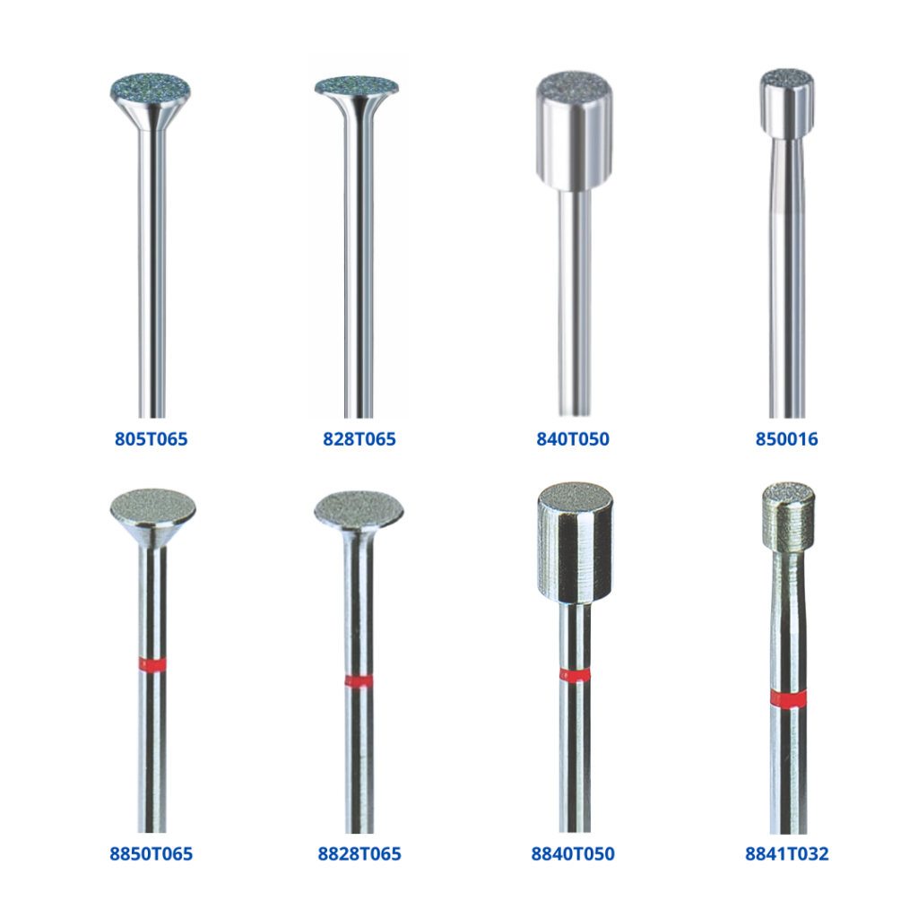 Top Grip fraisen Middelgrof: 805T065 – Spijker dik 828T065 – Spijker plat 840T050 – Cilinder groot 841T032 – Cilinder klein Top Grip fraisen Fijn: 8805T065 – Spijker dik 8828T065 – Spijker plat 8840T065 – Cilinder groot 8841T032 – Cilinder klein