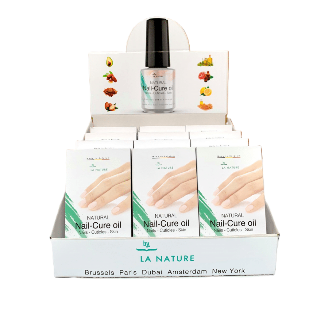 Natural Nail-Cure oil is een verzorgende nagelolie die gemaakt is om flexibiliteit, stevigheid en glans te geven aan de natuurlijke nagel, de kunstnagel en aan de nagelriem. De olie trekt diep in de huid en voelt niet vet aan.