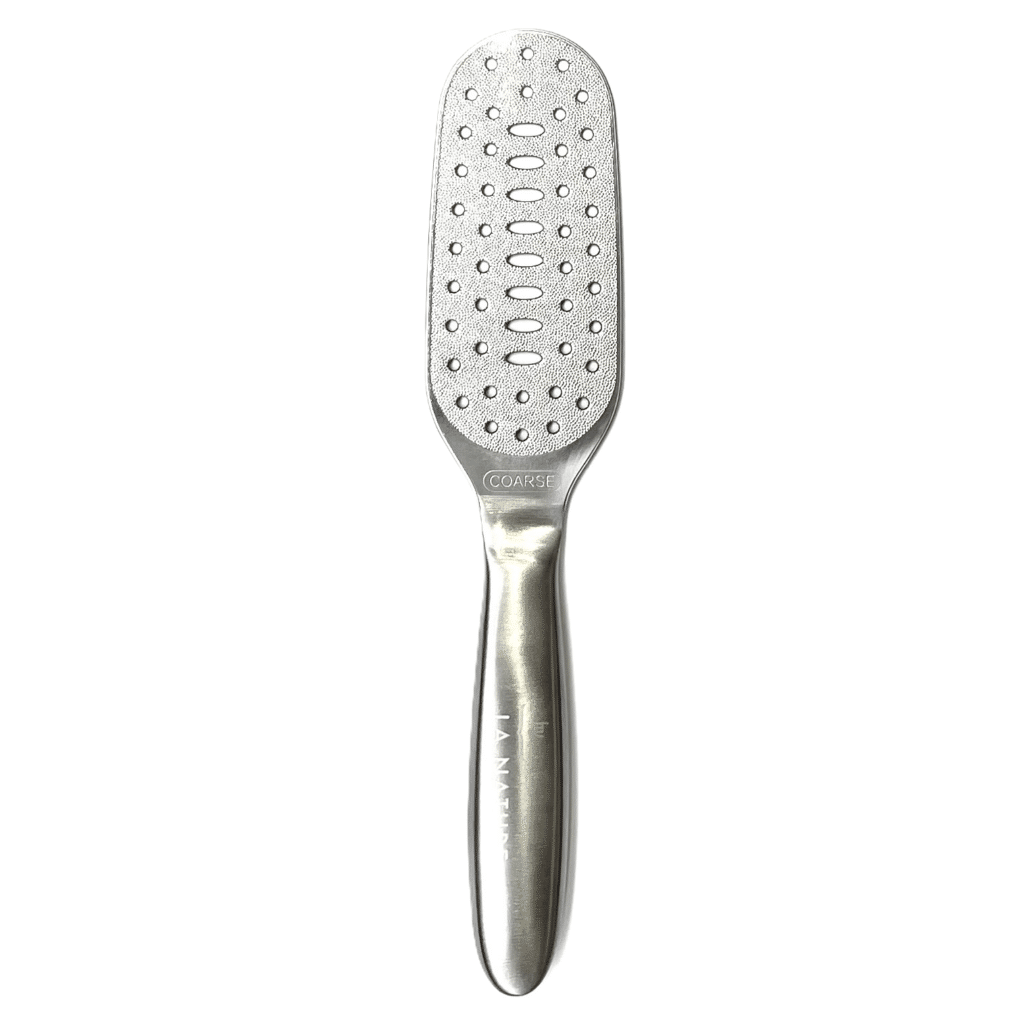 Een dubbelzijdige voetvijl voor gladde en verzorgde voeten. By La Nature Professionele Roestvrijstalen Vijl is een dubbelzijdige voetvijl met een metalen handvat.