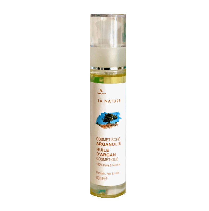 Dankzij de rijkdom aan omega 6 en vitamine E, zorgt arganolie voor een natuurlijke en effectieve bestrijding van veroudering en uitdroging. ‘by La Nature’ is van een hoge kwaliteit voor cosmetisch gebruik. Hij is koudgeperst. Deze pure olie is een ingrediënt bij verscheidene cosmeticaproducten. Het gebruik is aangewezen voor het slapengaan of ‘s morgens voor het aanbrengen van make-up. Ze kan ook dienen als vervanging van een gezichtscrème. Deze olie trekt snel in en laat geen glanzend effect na. Het vochtinbrengende en anti-oxiderende effect voorkomt ondervoeding van de huid. Het kan ook gebruikt worden voor de massage van baby’s, het verzachten van zonnebrand, het verminderen van striae en voor de massage van gewrichten.