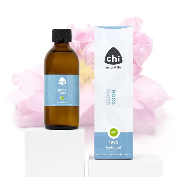 Rozenwater, 100% puur en biologisch, zeer geschikt bij elk huidtype en babyverzorging. Een verrukkelijk bloemenwater van de vers geplukte bloemblaadjes.