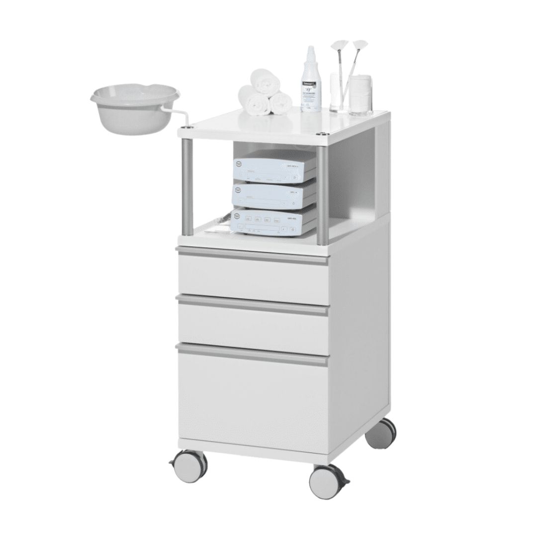 De CUBUS meubels zijn standaard voorzien van een hygiënisch kunststof werkblad (of glazen werkblad voor de SPA uitvoeringen), een loeplampbevestiging in het blad, 4 zwenkwieltjes en de lades beschikken over een ”soft-close” functie. Via een hoofdschakelaar op het achter paneel kunnen alle apparaten die in het meubel zijn aangesloten worden aan en uitgezet.