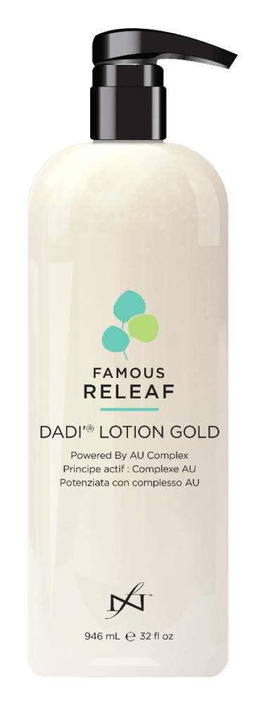 Een snel doordringende en niet vette beloning voor voeten, handen en gezicht! De Dadi Lotion Gold (voorheen Releaf Dadi’ Lotion) is de enige lotion die bestaat uit de Dadi’Oil en die de huid enorm voedt. Dit product bestaat uit natuurlijke ingrediënten. De bekroonde Dadi’ Lotion wordt naar een hoger niveau getild met AU Complex. Combinatie van allantoïne en Ureum.