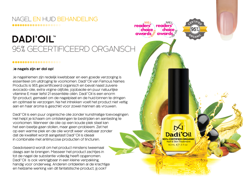 Flyer gericht op de pedicure praktijk. 2-zijdig met Dadi’Oil en Dadi Lotion Formaat: A6 Per 100 stuks
