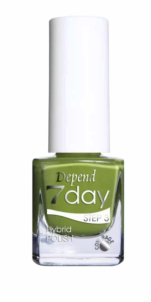 Alle kleuren kan je hier vinden Depend hybride 7Days   Depend 7day is een nagellaksysteem voor als je een nagellak wilt met superglans, topklasse duurzaamheid en een “gelgevoel”. Deze hybride formule houdt tot een week, is gemakkelijk aan te brengen en is gemakkelijk te verwijderen met Depend nagellakremover. Geen LED/UV-lamp nodig – dit nagellaksysteem hardt uit bij normaal daglicht of elektrisch licht.