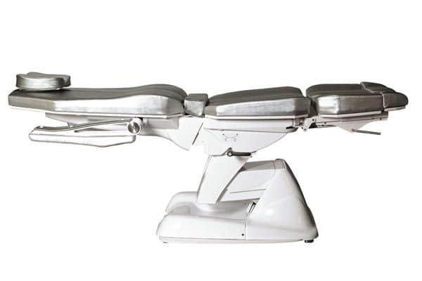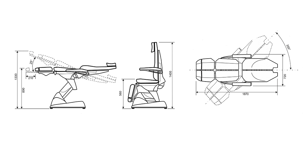 Volledig horizontale positie en Trendelenburg. Het meegeleverde lumbale kussen biedt maximaal comfort aan de cliënt. De armsteunen bewegen synchroon aan de stoel, zijn groot en bieden veilige steun voor activiteiten in de bed positie van de stoel.