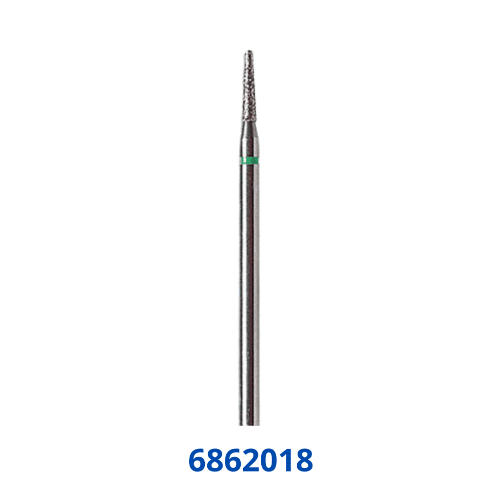 Fissuurfrais Diamant Grof 018; onderdeel van de Busch Diamant fraisen Grof lijn, voor het verwijderen van grof eelt en grove nagelbewerking. Let op! De fraisen niet sneller draaien dan het aangegeven toerental.
