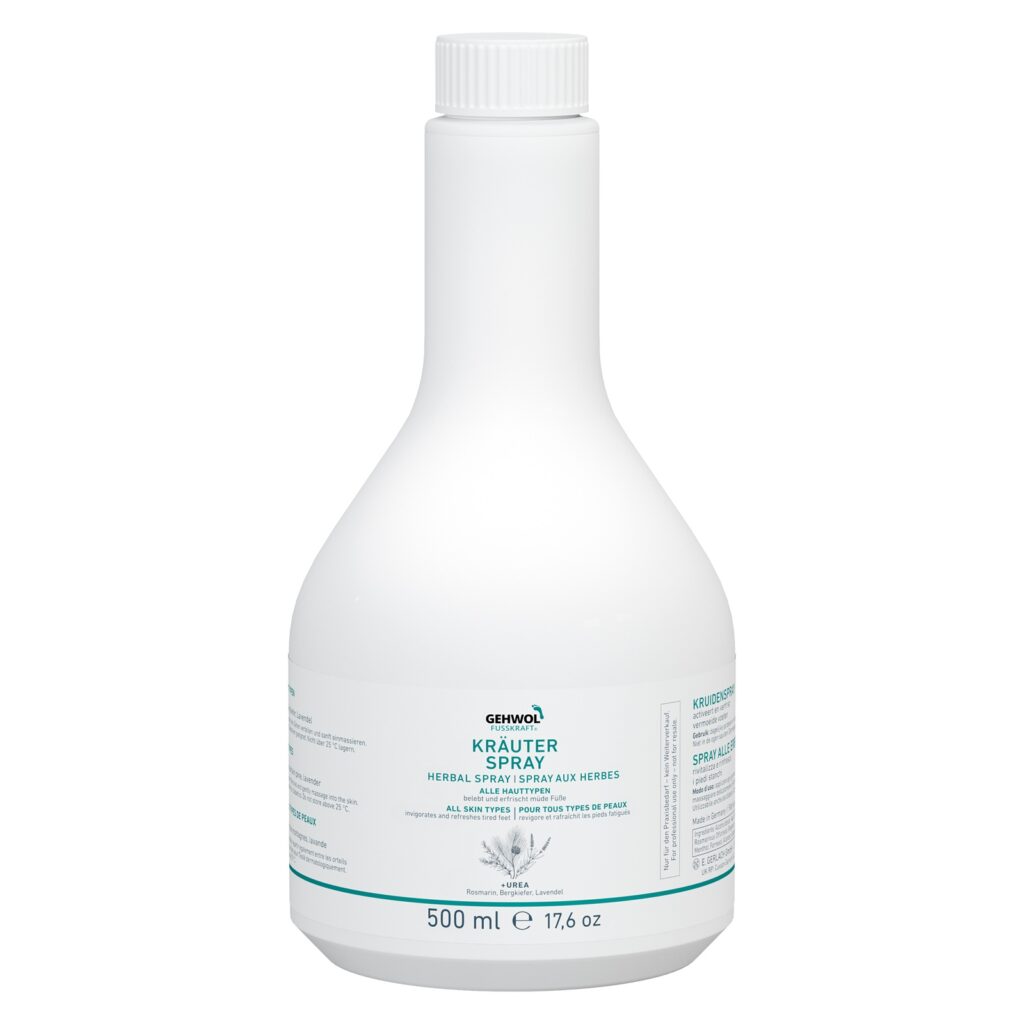 Gehwol Fusskraft Kruidenlotion verkoelt en verfrist de vermoeide voeten.