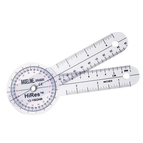 De goniometer van Baseline is een meetinstrument dat wordt gebruikt voor de nauwkeurige bepaling van de hielstand. Kan gemakkelijk met één hand worden bediend. Voorzien van een schaalverdeling in inches en centimeters. Lengte 15 cm.