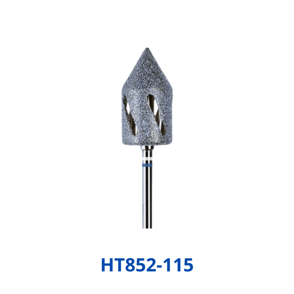 De punt loopt bij deze frees spits toe, zodat de frees niet alleen fijn is om eelt mee te bewerken, maar ook kloven!