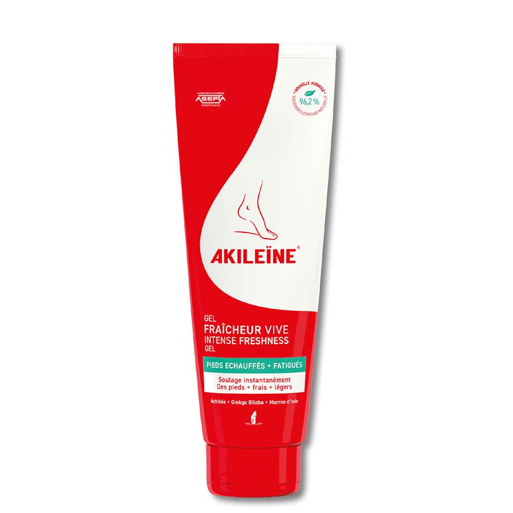 IJsgel tube 125 ml; Helpt bij vermoeide, verhitte voeten. Werkt verfrissend en kalmerend. Gebruik tweemaal per dag. Eigenschappen: De Akileïne® ijsgel met zijn dubbele kalmerende en verfrissende werking, kalmeert en ontzwelt onmiddellijk langdurig vermoeide en verhitte voeten. Verschaft een gevoel van betere voetcirculatie en een verkoelend effect gedurende enkele uren na het aanbrengen. Toepassing: Voer een zeer lichte voetmassage uit van de voetzool tot aan de enkel. Twee keer per dag gebruiken. Plakt niet en maakt geen vlekken. Ook verkrijgbaar: IJsgel tube 75ml en IJsgel 500ml