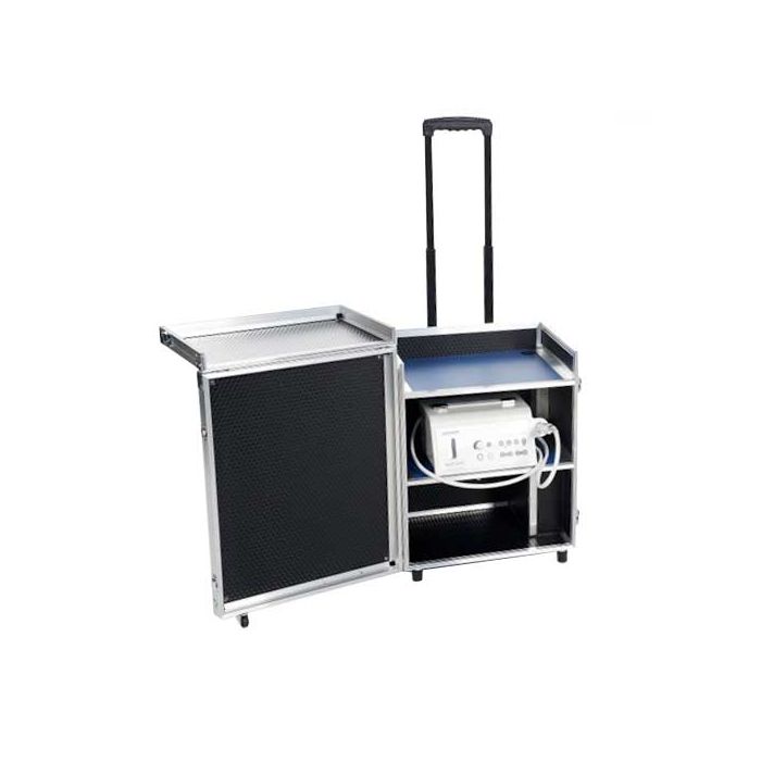 De pedicurekoffer Veron is geschikt voor zowel de ambulante praktijk als in eigen salon. Alle pedicurebenodigdheden bij de hand in één koffer en direct te gebruiken door de ingebouwde stroomaansluiting, voorzien van een tweevoudig stopcontact voor de motor en de lamp + een automatisch oprolbaar snoer met een lengte van 6 meter. Een beensteun is makkelijk mee te nemen, door hem aan de trolley te hangen. De koffer is uitgevoerd in zwart, grijs of blauw kunststof en voorzien van 4 sloten. Verder beschikt de koffer over een handige trolleygreep, en heeft de koffer heeft grote wielen waarmee moeiteloos gereden kan worden.   Buitenmaten: Hoogte: 58 cm Breedte: 42 cm, bij de wielen 50 cm Binnenmaten: Breedte: 40 cm Diepte: 24,5 cm + 3 cm van de deur Hoogte voor de motor is 20 cm