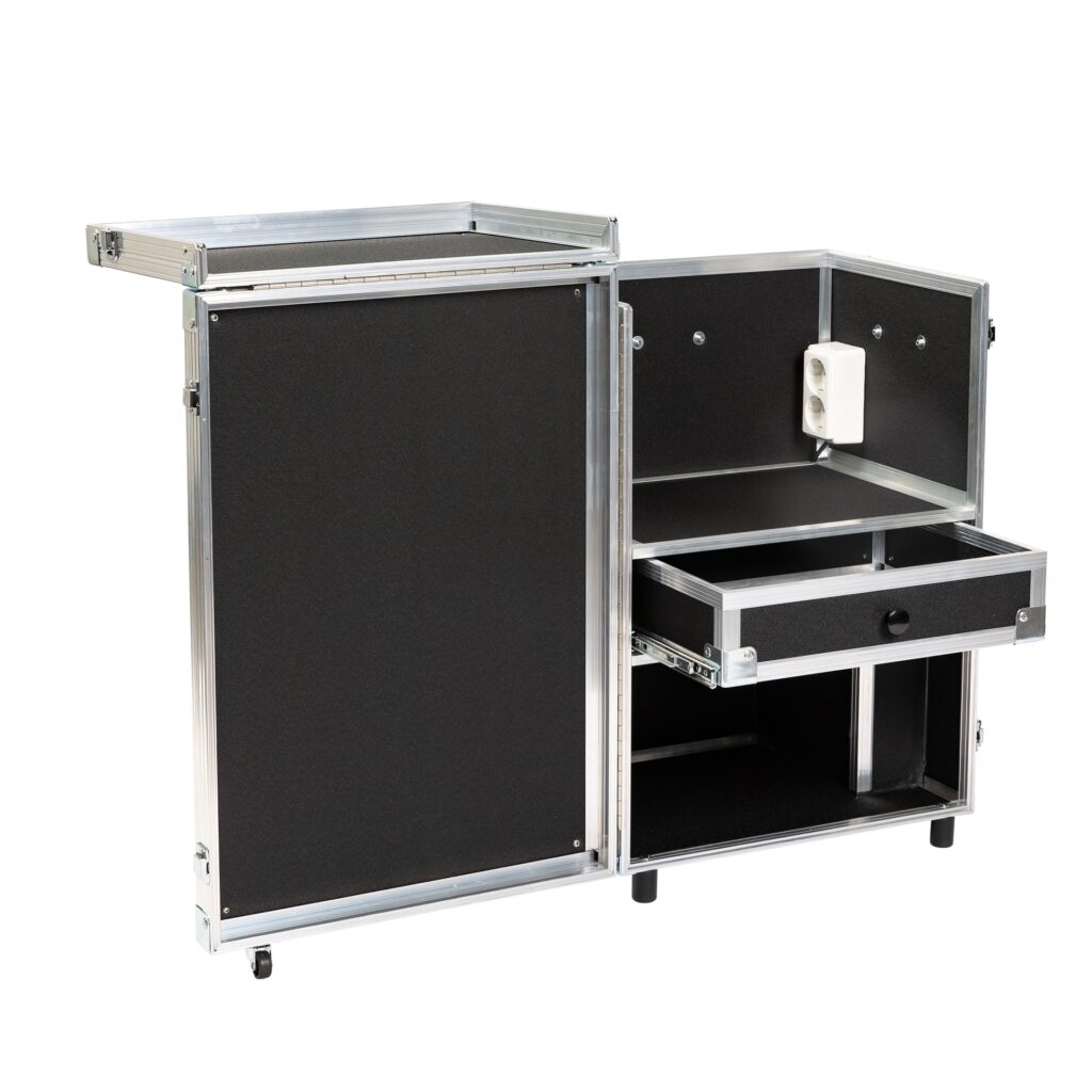 De koffer is voorzien van een lade waar u gemakkelijk en overzichtelijk uw spullen in kunt opbergen. Het middelste vak is een lade en de motor komt nu bovenin te staan. Er kan een vakverdeling in de lade, waardoor alles netjes blijft liggen. Ook is de koffer voorzien van een tweevoudig stopcontact en een oprolbaar snoer met een lengte van 5 meter. Verder beschikt de koffer over een handige trolleygreep dat tevens de plaats is voor de beensteun. Door de grote zijwielen is deze koffer moeiteloos te verrijden. De koffer is uitgevoerd in kunststof en voorzien van 4 sloten. Deze koffer is 5 cm dieper en hoger dan de Veron met lade. Ideaal voor hogere  motoren.   Buitenmaten: Hoogte: 63 cm Breedte: 42 cm, bij de wielen 50 cm Diepte: 37 cm incl. wielen en trekstang Binnenmaten: Breedte: 40 cm Diepte: 29 cm + 3 cm van de deur Hoogte voor de motor: 23 cm + 3 cm van het deksel Hoogte van de lade: 7,5 cm Gewicht: 11,7 kg Bijpassende accessoires: Deurtas Veron XL Ladeverdeling Veron 5 cm dieper/XL   Koffer is zonder accessoires