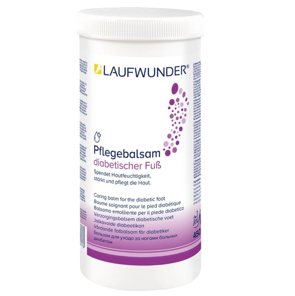 Laufwunder verzorgende balsem voor de diabetische voet verhoogt het vochtgehalte van de huid dankzij glycerine. In tegenstelling tot het veelgebruikte ureum heeft glycerine geen huidverdunnende werking en belast het de kwetsbare huid dus niet.