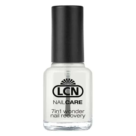 Vooral bij gevoelige, dunne en broze nagels versterkt de LCN 7in1 Wonder Nail Recovery de nagelplaat en egaliseert oneffenheden. De nagel glanst, wordt verstevigd en verlicht door de bleekfunctie. Ook bij uitstek geschikt als base coat om gele verkleuring van gekleurde lakken op de nagel te voorkomen en om een langere houdbaarheid te garanderen. Voor de perfecte wetlook finish kan de supersnel drogende LCN 7in1 Wonder Nail Recovery gebruikt worden als topcoat sealer.