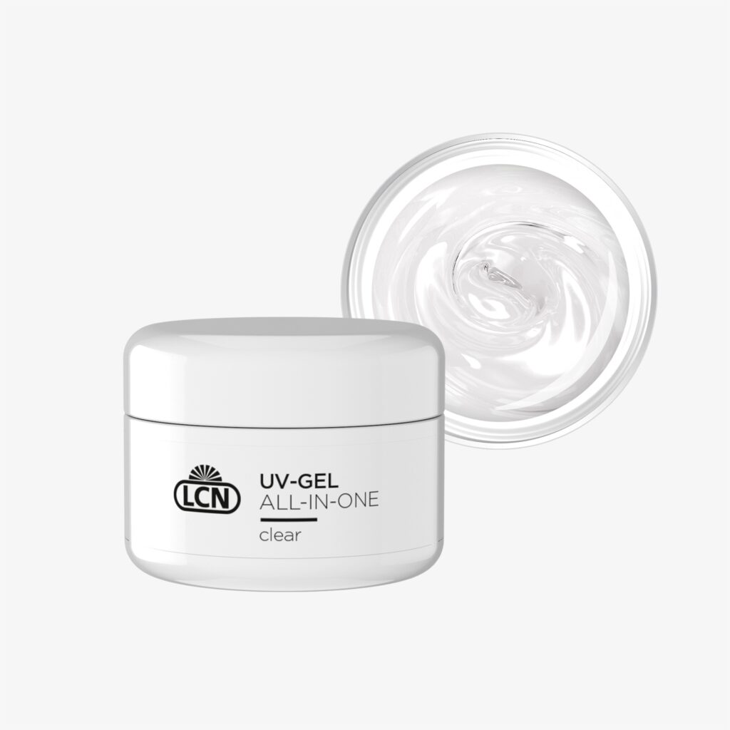 3-in-1 bouwgel voor nagels. De “All in One” 1-fase opbouwgel is geschikt voor alle nageltypes. Het combineert hechtende, opbouwende en verzegelende eigenschappen in één UV-gel. De UV-gel biedt een hoge stabiliteit voor alle nagellengtes en kan ook worden gebruikt voor extensions met tips of sjablonen. De modellering met de All in One Gel kan worden afgewerkt met alle topcoats, afhankelijk van de gewenste kleur.