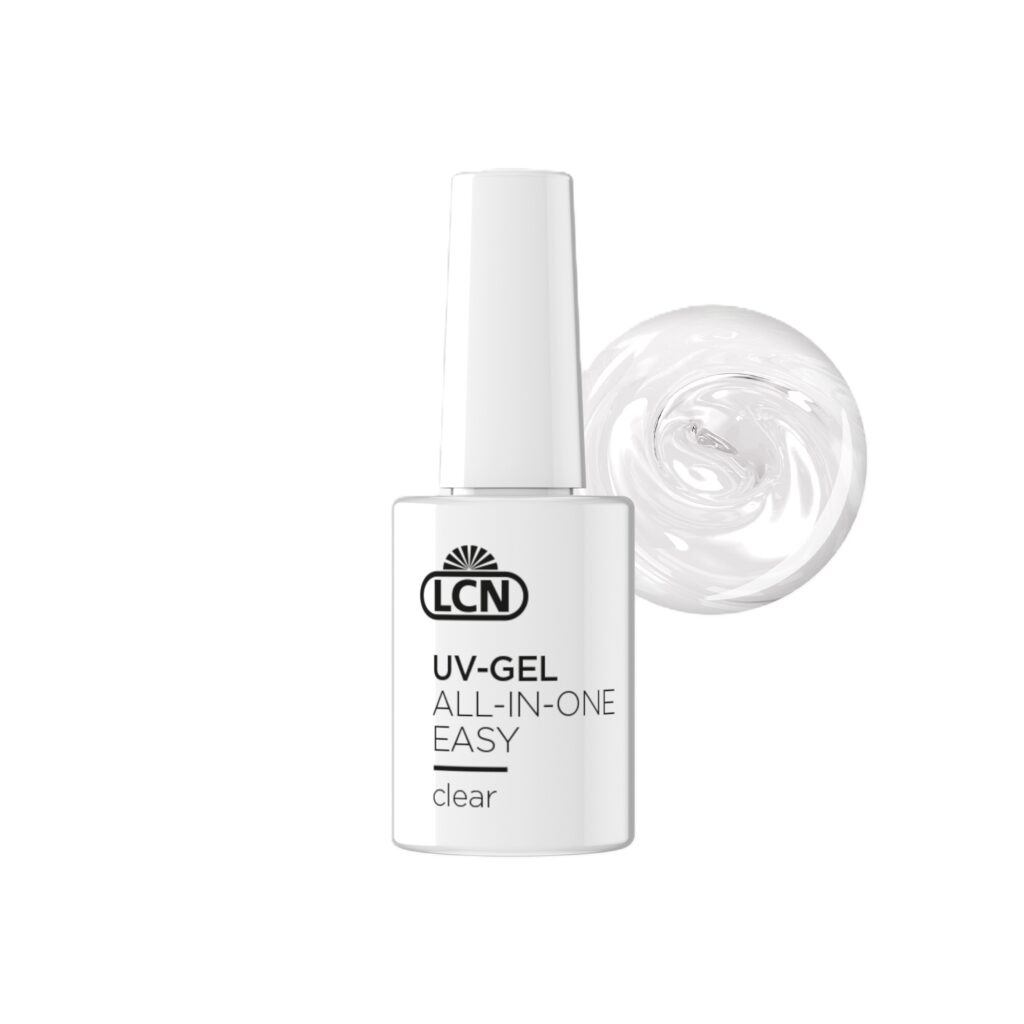 De UV-gel All-in-One Easy is een 1-fase opbouwgel in een flesje met kwastje en is geschikt voor alle nageltypen.