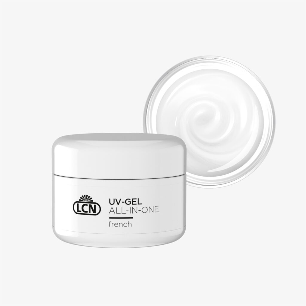 De “All in One” 1-fase opbouwgel is geschikt voor alle nageltypes. Het combineert hechtende, opbouwende en verzegelende eigenschappen in één UV-gel. De UV-gel biedt een hoge stabiliteit voor alle nagellengtes en kan ook worden gebruikt voor extensions met tips of sjablonen. De modellering met de All in One Gel kan worden afgewerkt met alle topcoats, afhankelijk van de gewenste kleur.