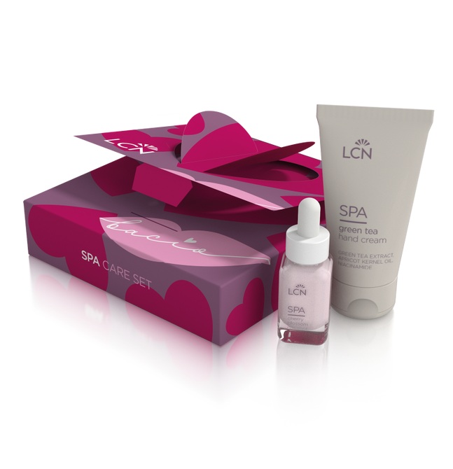 De set bestaat uit de verzorgende SPA Green Tea Hand Cream en de zachte SPA Cherry Blossom Nail Shot. Samen vormen ze het perfecte verzorgingsduo dat je handen verwent, versterkt en laat stralen. Ideaal voor je klanten – en ook visueel is het een echte blikvanger in de studio.