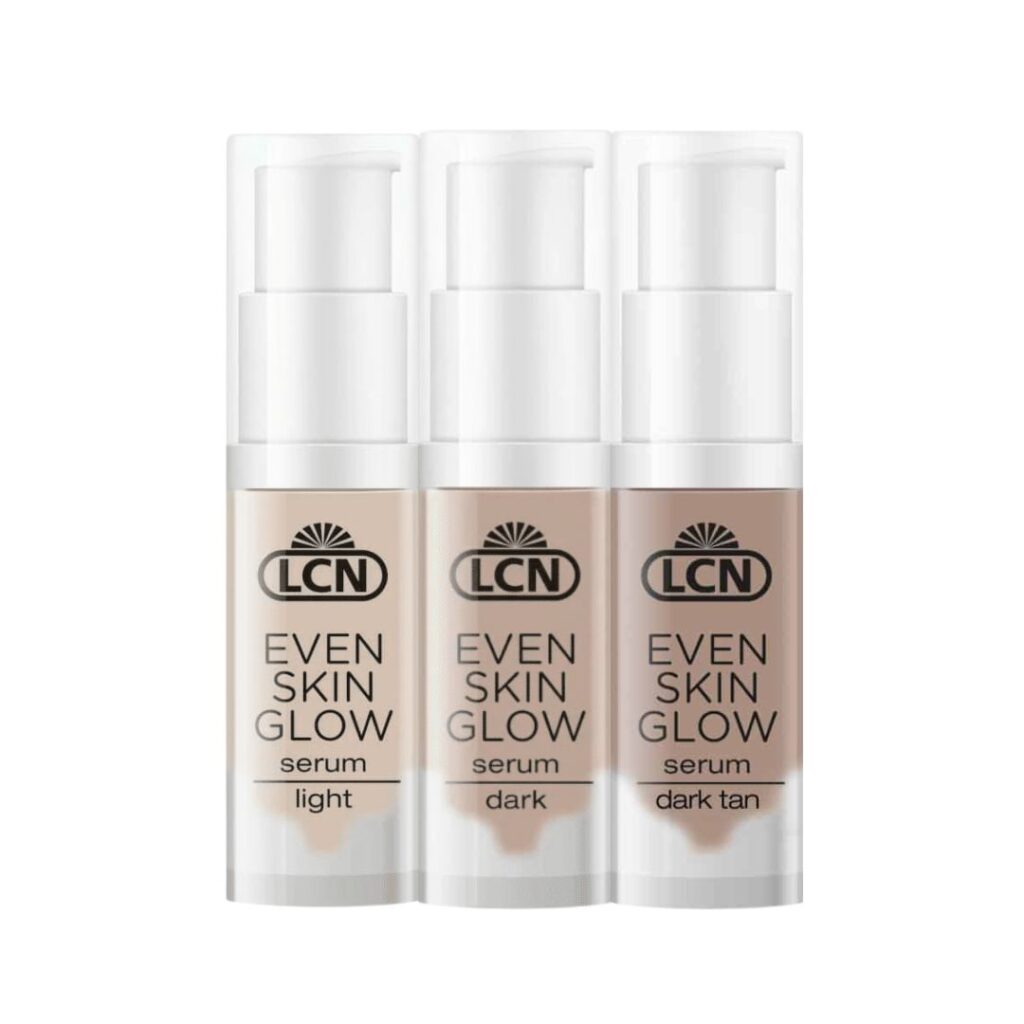 – Breng het Even Skin Glow Serum light, dark of dark tan (of een mengeling) aan afhankelijk van het huidtype.