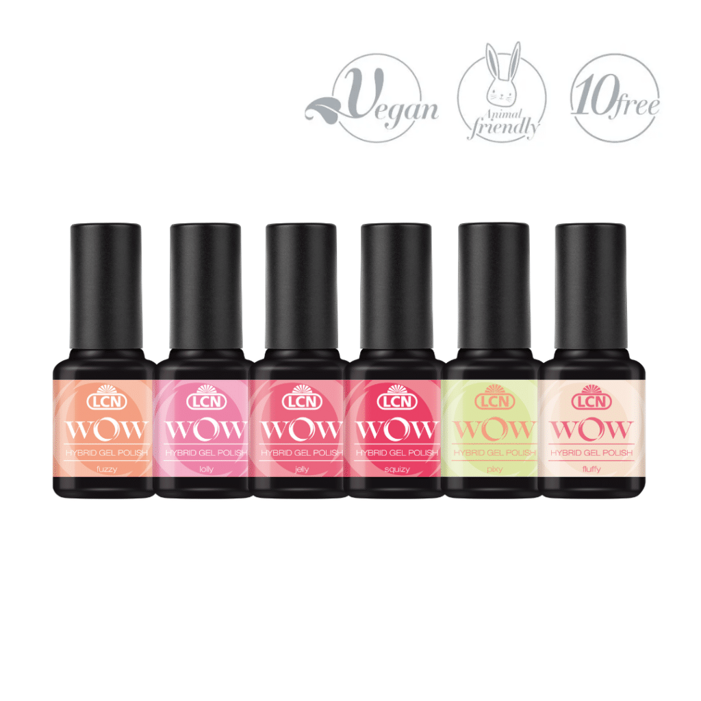 WOW Hybrid Gel is verkrijgbaar in 40 intense en schitterende kleuren, die altijd beschikbaar blijven. Daarnaast lanceert LCN meerdere keren per jaar seizoensgebonden trendkleuren, die tijdelijk verkrijgbaar zijn en inspelen op de nieuwste kleurtrends.