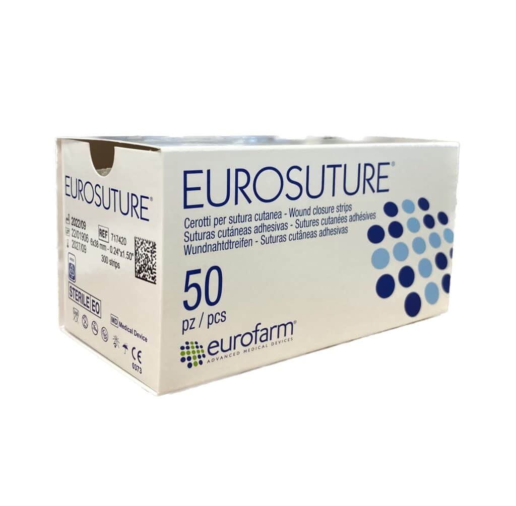Eurosuture strips worden gebruikt voor het sluiten van lichtgapende wonden, die (net) niet gehecht hoeven te worden. Het is een professioneel en steriel alternatief voor het “zwaluwstaartje”.