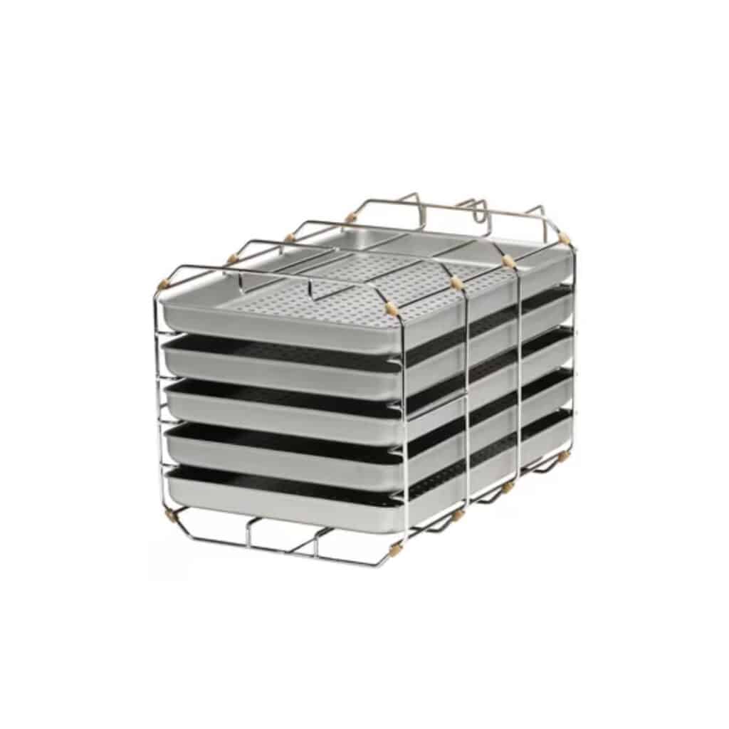 De Mount A Plus voor autoclaven met een kamerdiepte van 35 cm biedt plaats aan maximaal 5 standaard trays of maximaal 3 MELAstore Boxen 100 (bij een rotatie van 90°).