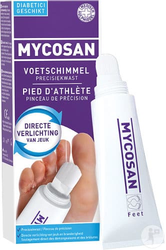 Mycosan Voetschimmel is een effectieve gel voor de behandeling van voetschimmel. De gepatenteerde formule is bewezen effectief tegen schimmels die voetschimmel veroorzaken. De brede kwast is hygiënisch in gebruik en zo ontworpen dat deze alle plekjes goed kan bereiken op de voet en tussen de tenen met een ‘no touch’ applicator.