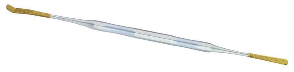 EKS Diamant nagelheffer dubbel 17 cm – Dubbelzijdig pedicure instrument – Nagelheffer met 1 gebogen en 1 platte zijde met diamant coating. – Voor het behandelen van kleine onregelmatigheden aan de nagel – Voor werken onder de nagel en dieper liggende delen. – RVS instrument voorzien van TIN diamant coating (TitanNitride)