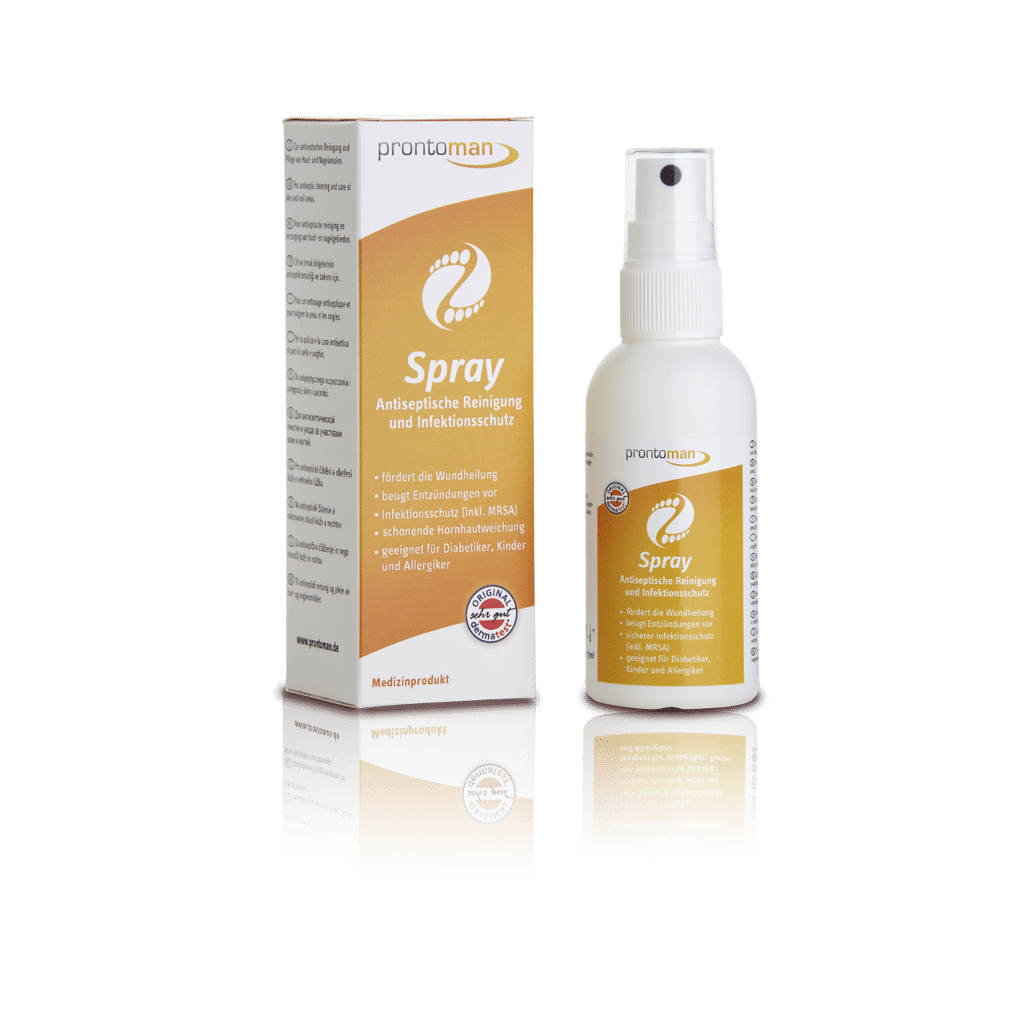 - Prontoman Spray minimaliseert voet- en wondgeurtjes.