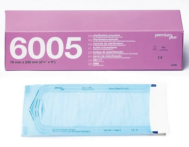 Grote sterilisatie zakken voorzien van een zelfklevende rand. Inhoud: Verpakt per 200 stuks in een doos. Afmeting: 140 x 260 mm