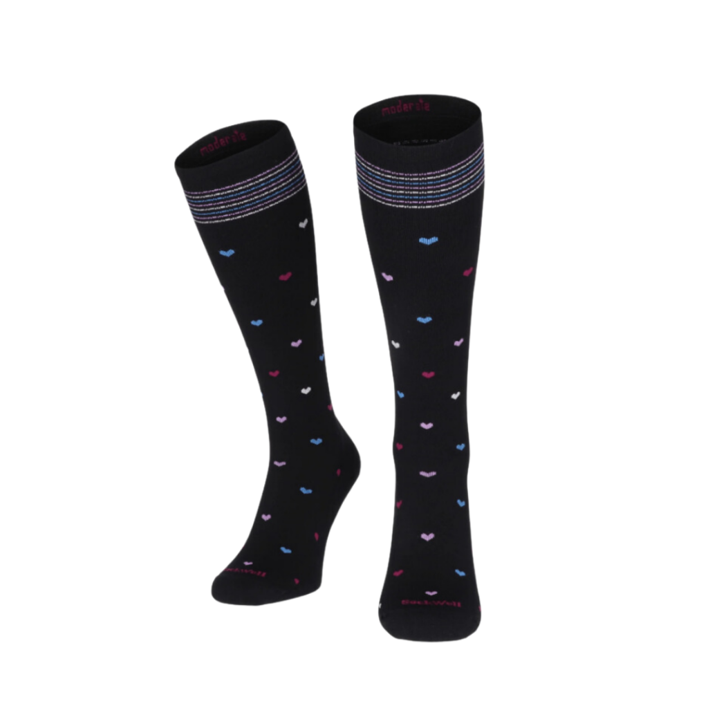 De Full Heart is een trendy klasse 1 compressiekous voor dames. De pasvorm van deze compressiekous is speciaal aangepast op bredere kuiten, zodat er ook voor vrouwen met bredere onderbenen een goed passende en modieuze Sockwell compressiekous in het assortiment is. De sokken helpen vermoeide en opgezwollen benen en voeten voorkomen en dragen bij aan een vitaler gevoel. Bovendien bieden ze verlichting gedurende een zwangerschap. De natuurlijke materialenmix met merinowol en bamboe voelt heerlijk comfortabel aan en houdt de voeten op temperatuur, droog en geurvrij.