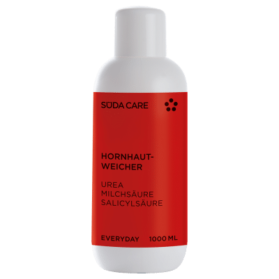 Suda Care Everyday Eeltweker 1000ml; Goed werkende milde eeltverzachter (weker) voor handen en voeten. Ideaal voor professionele behandeling. Maakt eeltige huidzones zacht en soepel. Bevat melkzuur (als verzachtend middel) en kamille-extract (om de huid te kalmeren). Bovendien verrijkt met voedende componenten zoals allantoïne en Arnica.