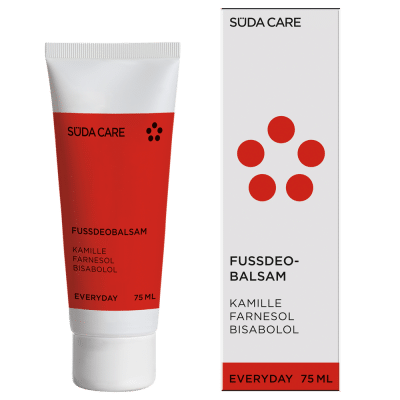 Suda Care Everyday Voetdeo Balsem 75ml; Betrouwbare hulp tegen voetengeur. Voorkomt overmatig zweten, verfrist en ontgeurt zweetvoeten, vermoeide voeten en oververhitte voeten. Hoog gehalte aan Bisabolol en Farnesol, wat een preventieve werking heeft tegen onaangename voetgeur. Kan meerdere keren per dag worden gebruikt, ’s ochtends en ’s avonds is hierbij aanbevolen. Ideaal voor sporters.   Inhoud: 75ml Ook verkrijgbaar in: 100ml (spray) en 500ml