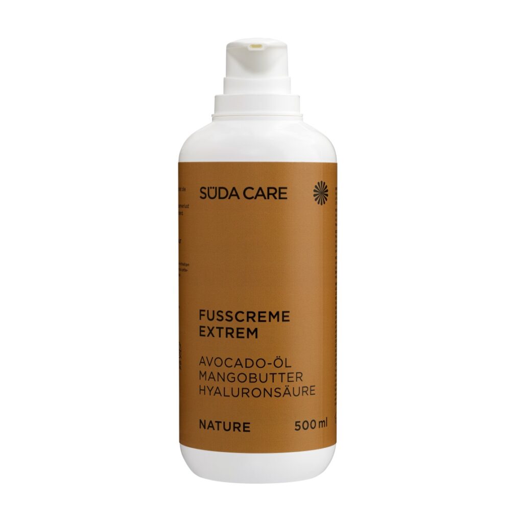 Suda Care Nature Voetcreme Extreme 500ml; Hoog vetgehalte – Calcium PCA versterkt de lipide barrière van de opperhuid. Beschermt tegen trans epidermaal waterverlies (TEWL), intensief hydraterend. De voetcreme extreem is geschikt voor de droge en zeer droge huid.