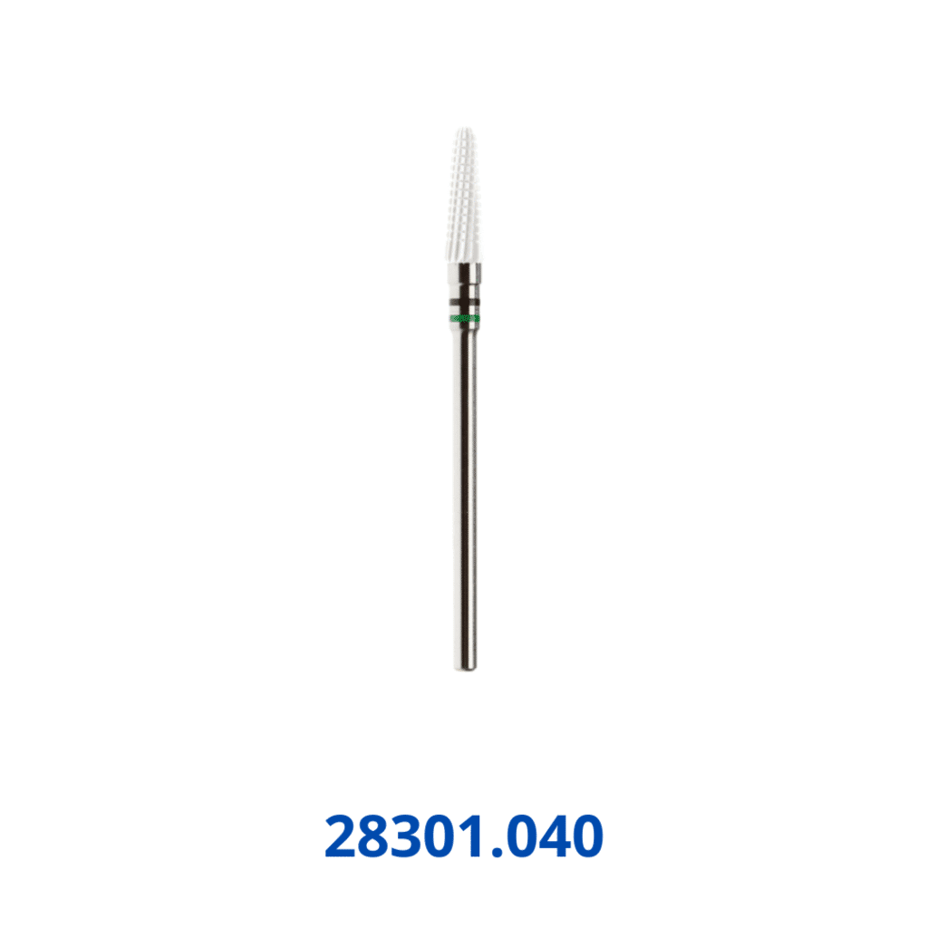 Suda Keramische Pyramidefrais GSQ 040 -Met deze innovatieve keramische fraisen vangt u 2 vliegen in één klap : Slijpen & Afwerken. Wat vaak gebeurt in 2 fases gaat nu in één keer. Na het dunner slijpen van de nagel hoeft u de nagel niet met een andere fijnere frais nog na te behandelen. De keramische fraisen laten al een glad oppervlak achter. Groot voordeel is ook dat er geen warmteontwikkeling is bij het werken met keramische fraisen.