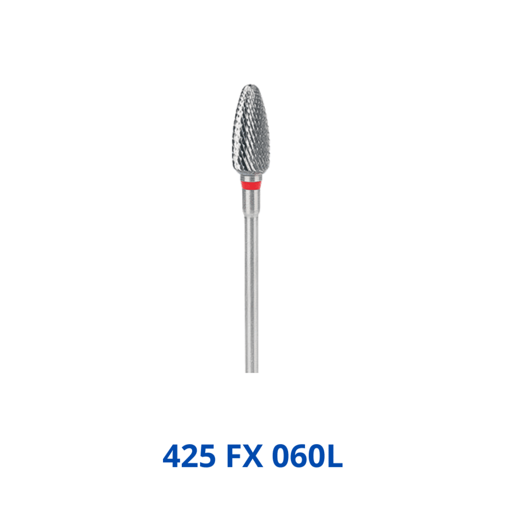 Hardmetalen frais ovaal fijne uitvoering (Tungsten L-TYP Frais Ovaal FX 060 voor linkshandigen). Het gebruik van hardmetalen of tungsten fraisen is de laatste jaren in de voetverzorging erg in opkomst. Een techniek die in de tandtechnische sector al vele jaren wordt toegepast. De samenstelling van de fraisen garandeert een zeer lange levensduur en hoge weerstand tegen invloeden van buitenaf. In vergelijk met staalfraisen is de levensduur van hardmetalen fraisen vele malen langer. De hardmetaal fraisen zijn leverbaar in drie verschillende grofheden. Hard Metalen frees voor linkshandigen voor sterk verdikte nagels, hyperkeratose en ortheses.