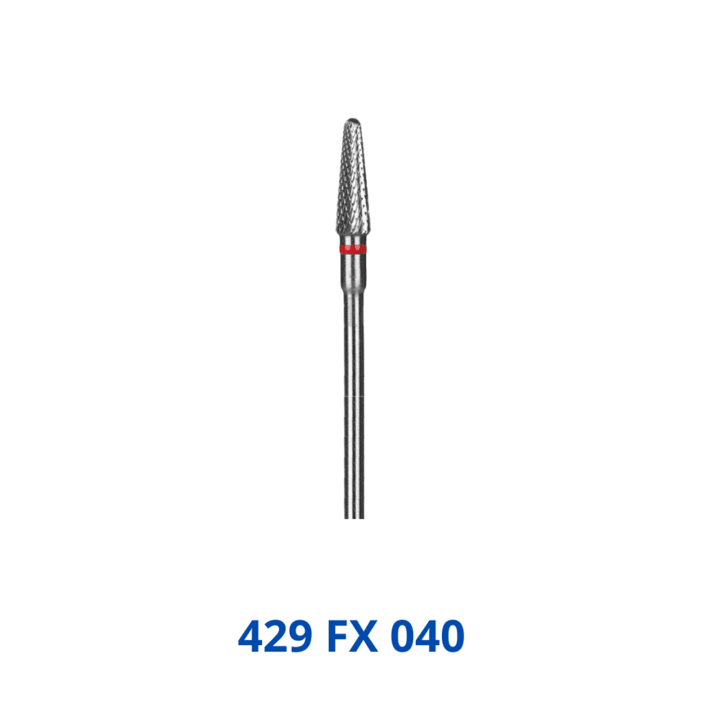 Hardmetalen Pyramidefrais fijne uitvoering (Tungsten Pyramidefrais FX 040). Het gebruik van hardmetalen of tungsten fraisen is de laatste jaren in de voetverzorging erg in opkomst. Een techniek die in de tandtechnische sector al vele jaren wordt toegepast. De samenstelling van de fraisen garandeert een zeer lange levensduur en hoge weerstand tegen invloeden van buitenaf. In vergelijk met staalfraisen is de levensduur van hardmetalen fraisen vele malen langer.