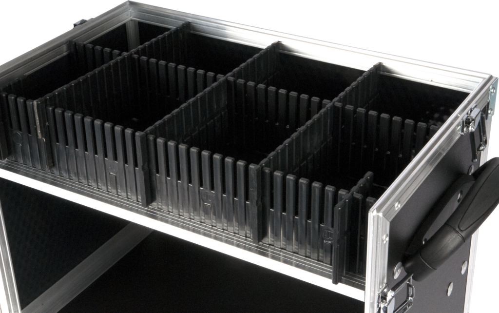 Vakverdeling voor op de bovenste plank in de koffer. Producten blijven zo netjes in de koffer bewaard. Hiermee creëer je 8 vakken.