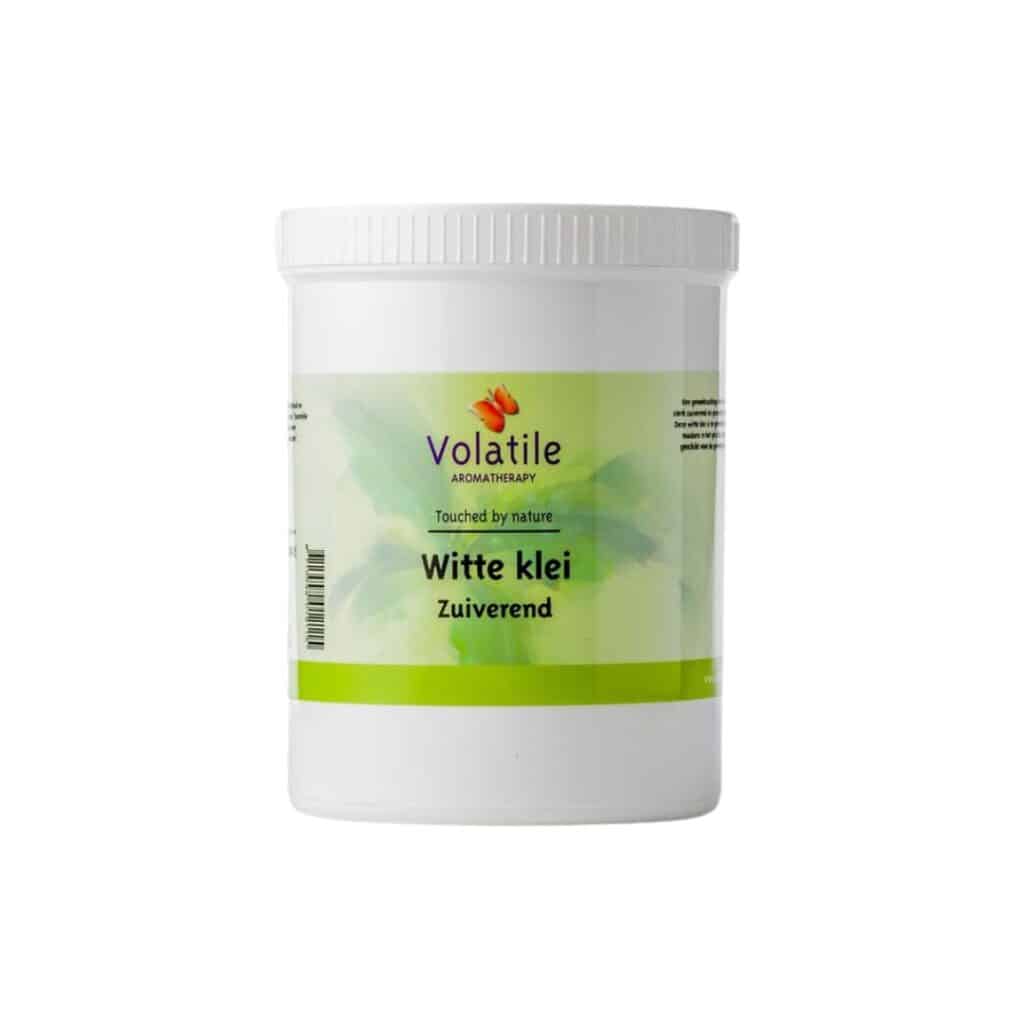 Volatile Witte Klei Poeder is een 100% natuurlijke, geneeskrachtige klei met een sterk zuiverende, genezende en regenererende werking. Dankzij de milde samenstelling is deze klei bijzonder geschikt voor de gevoelige huid, de rode huid en zelfs de babyhuid.
