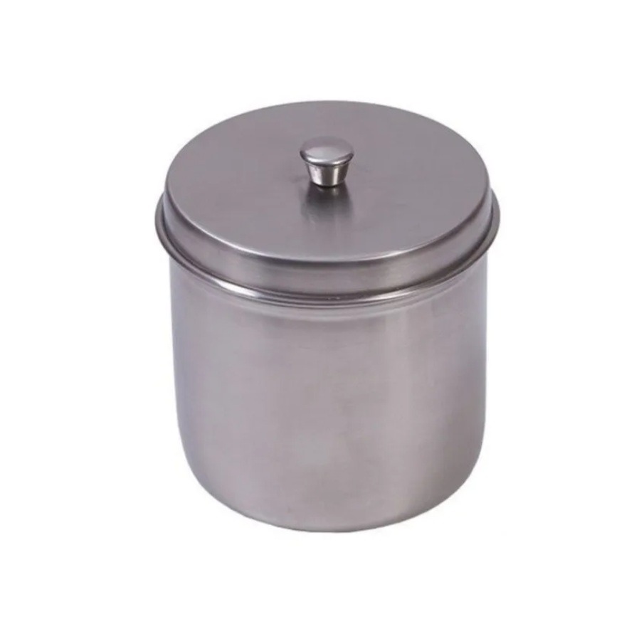 Een RVS wattenpot geschikt voor de opslag van watten of als instrumentendoos.