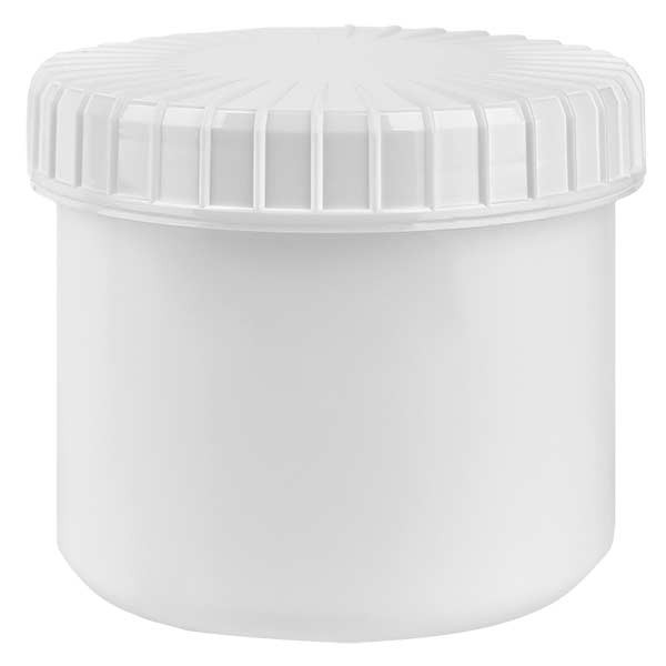 Inhoud: 135 ml Hoogte inclusief deksel: 54 mm Maximale etiket hoogte: 35 mm Diameter: 58 mm Voor zalf, crème, vaste stoffen etc. Levering inclusief geribbeld wit schroefdeksel van PE, type sluiting standaard
